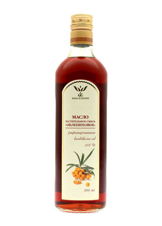 Это масло выделяется благодаря своему насыщенному красно-оранжевому цвету и специфическому приятному запаху. Масло из облепихи DIAL EXPORT не является БАДом, оно применяется в кулинарии и обладает большим количеством лечебно-профилактических свойств. Среди других масел оно выделяется благодаря содержанию витаминов группы В, витамина А, РР, Е, С, каротиноидов (около 40%) и многих микроэлементов. Является природным антибиотиков, повышает тонус и иммунитет. Нагревать не рекомендуется!