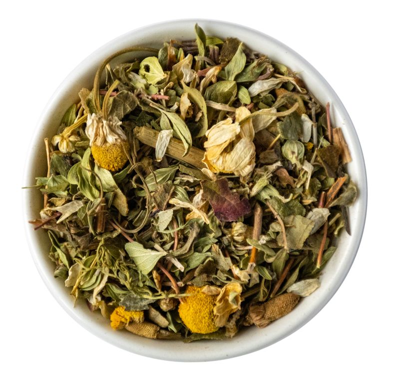 Чабрец высокогорный, ромашка, мелисса лимонная, лист черной смородины.